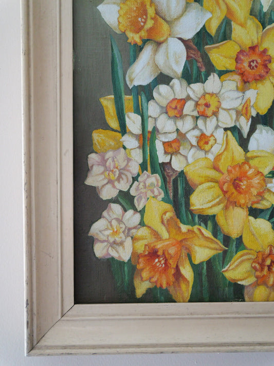 Vintage Spring Oil Painting of Daffodils