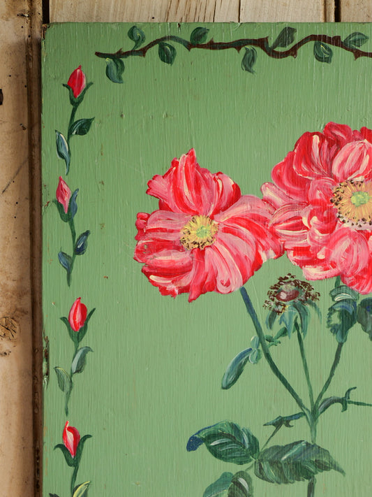 Vintage Folk Style ‘Peony’ Painted Wood Panel