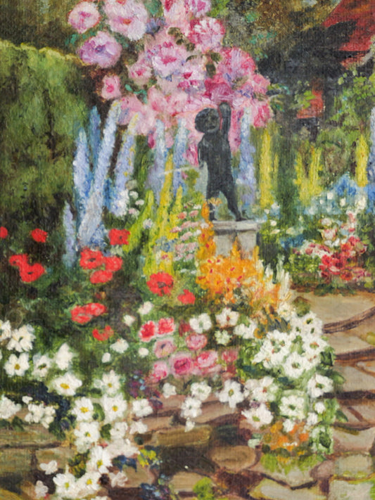 Vintage Art School Garden Painting on Canvas