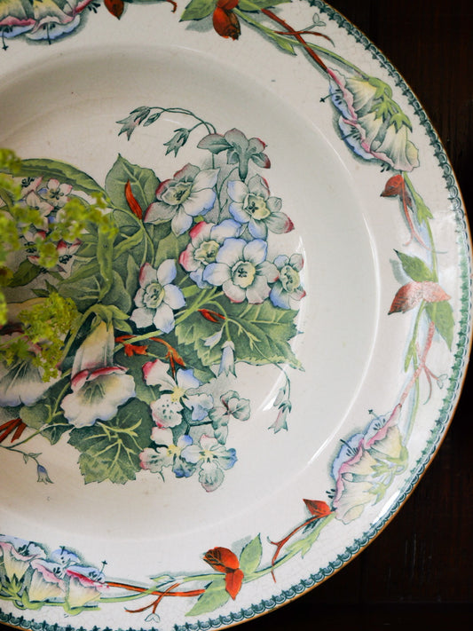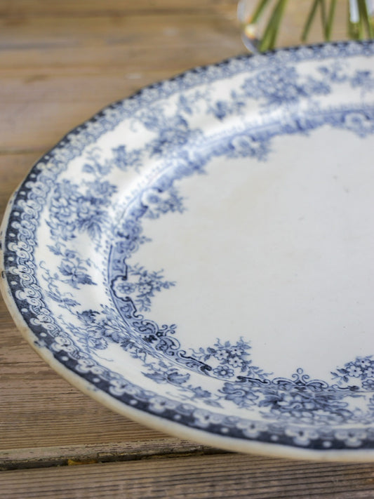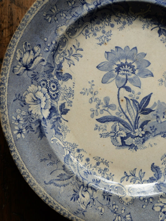 Antique Botanical Blue Transferware Plate