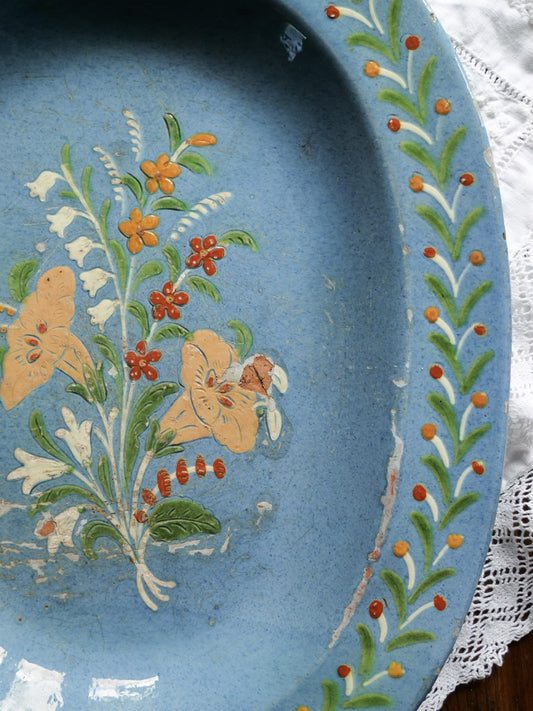 Rustic Antique Hand Painted Floral Folk Art Platter