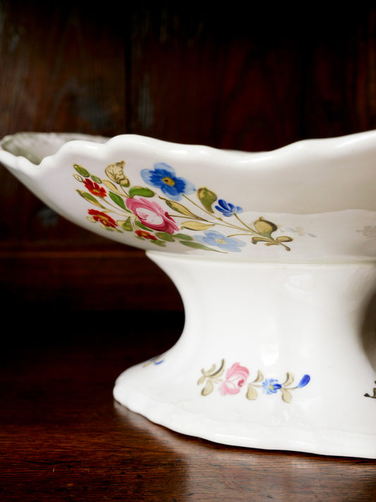 Antique Hand Painted Floral Pedestal Dish
