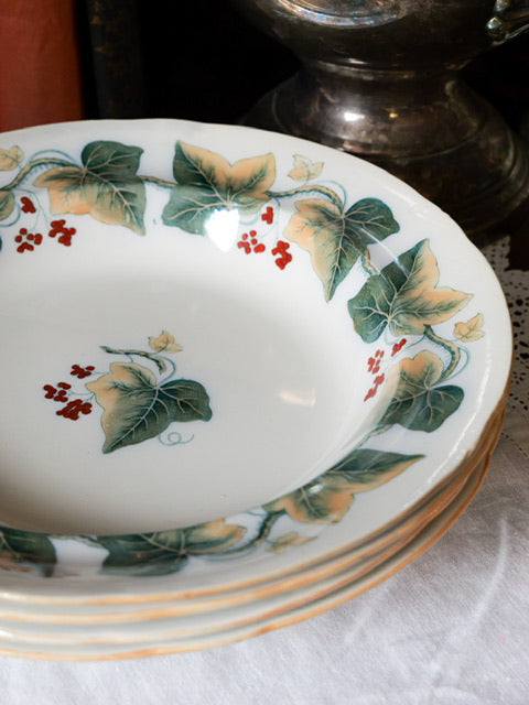 Set of 4 Antique Davenport Shallow Ivy Wreath Bowls