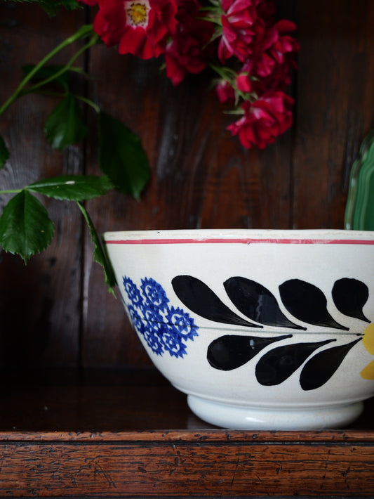 Antique Welsh Yellow Tulip Spongeware Bowl (Medium)