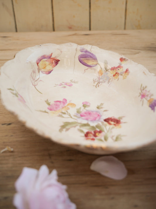 Antique French Hand Painted Floral Dish