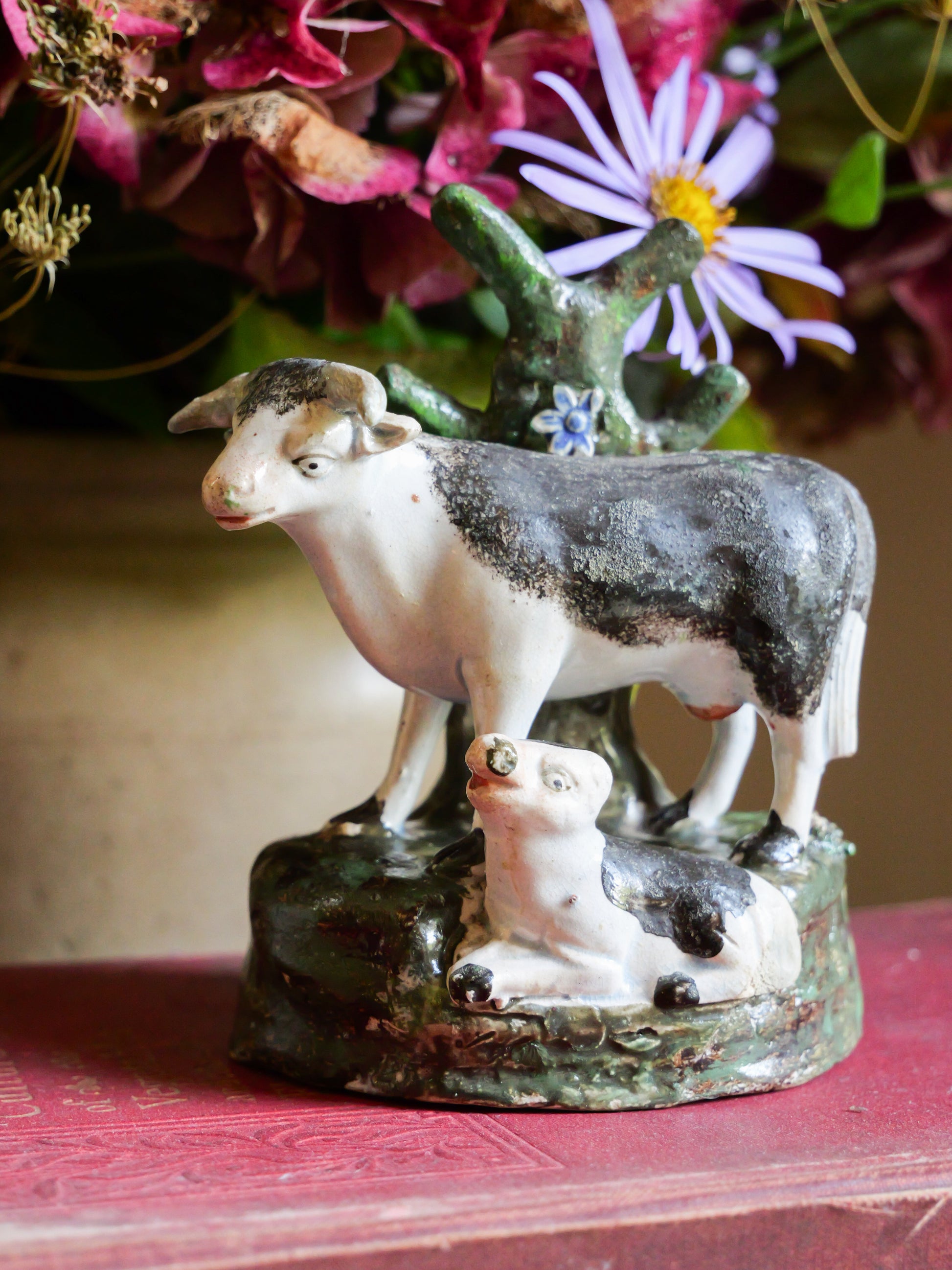 Primitive 18th Century Pearlware Cow & Calf Figure