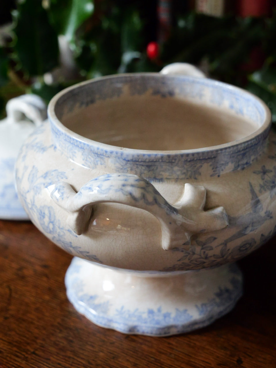 A most beautiful set of two Victorian ironstone sauce tureens, both with the pale blue asiatic pheasant transfer pattern. One slightly larger than the other.