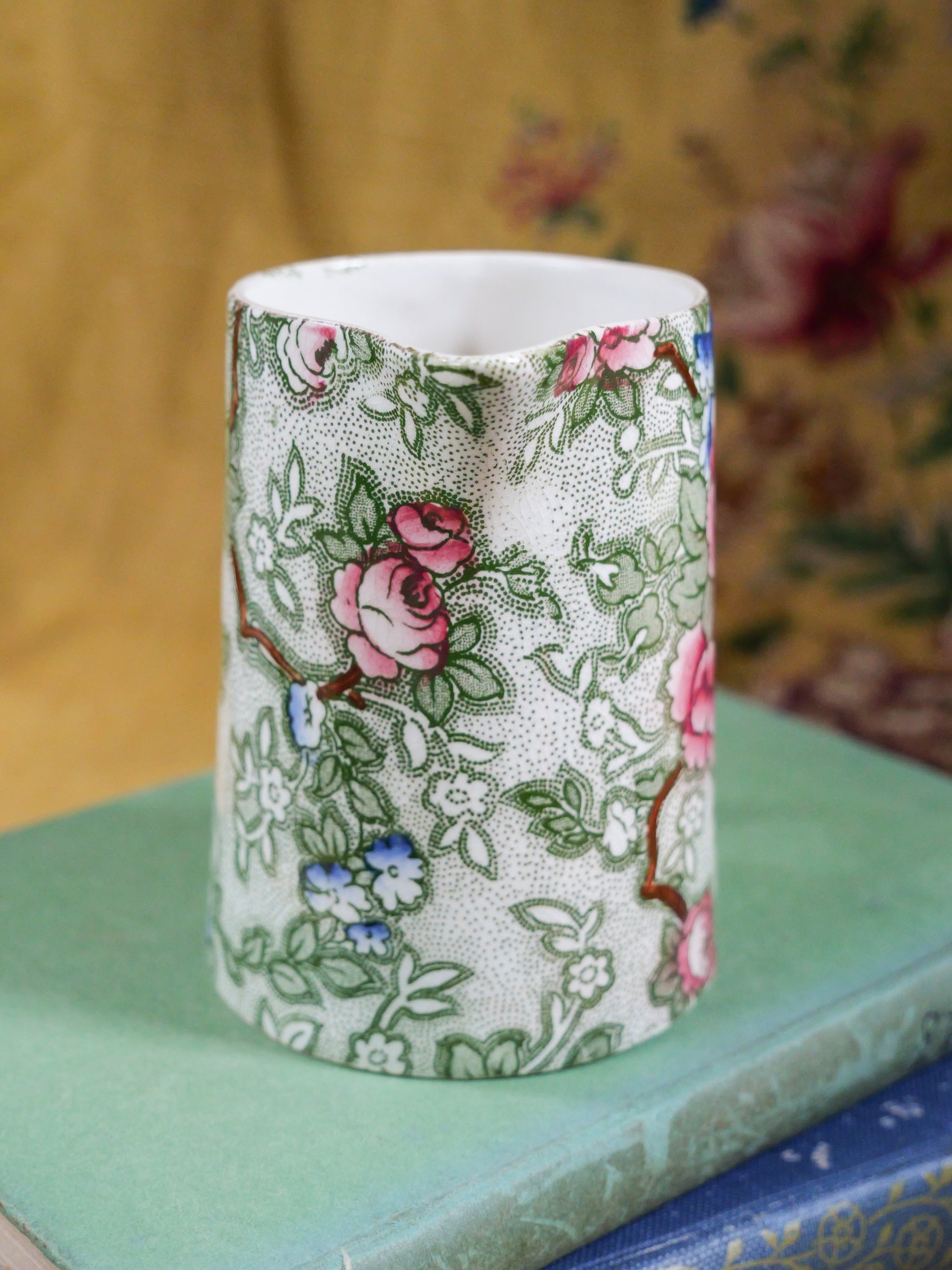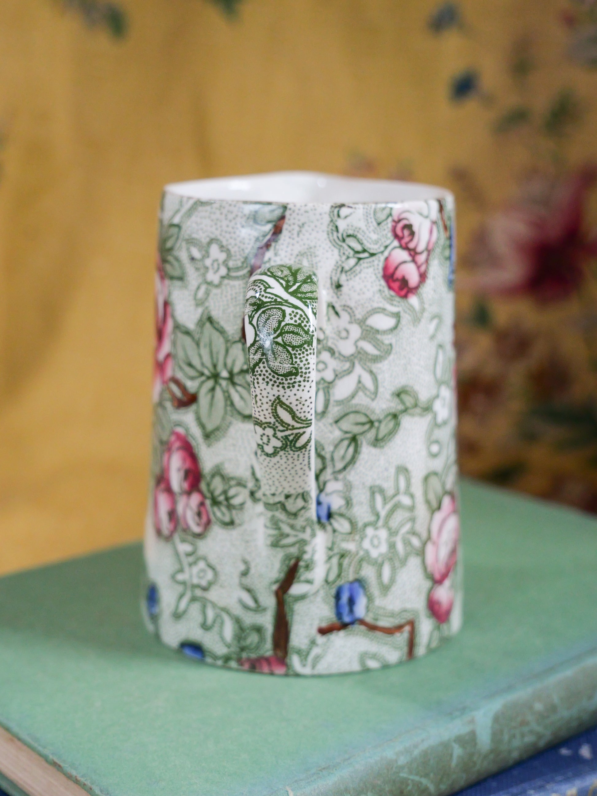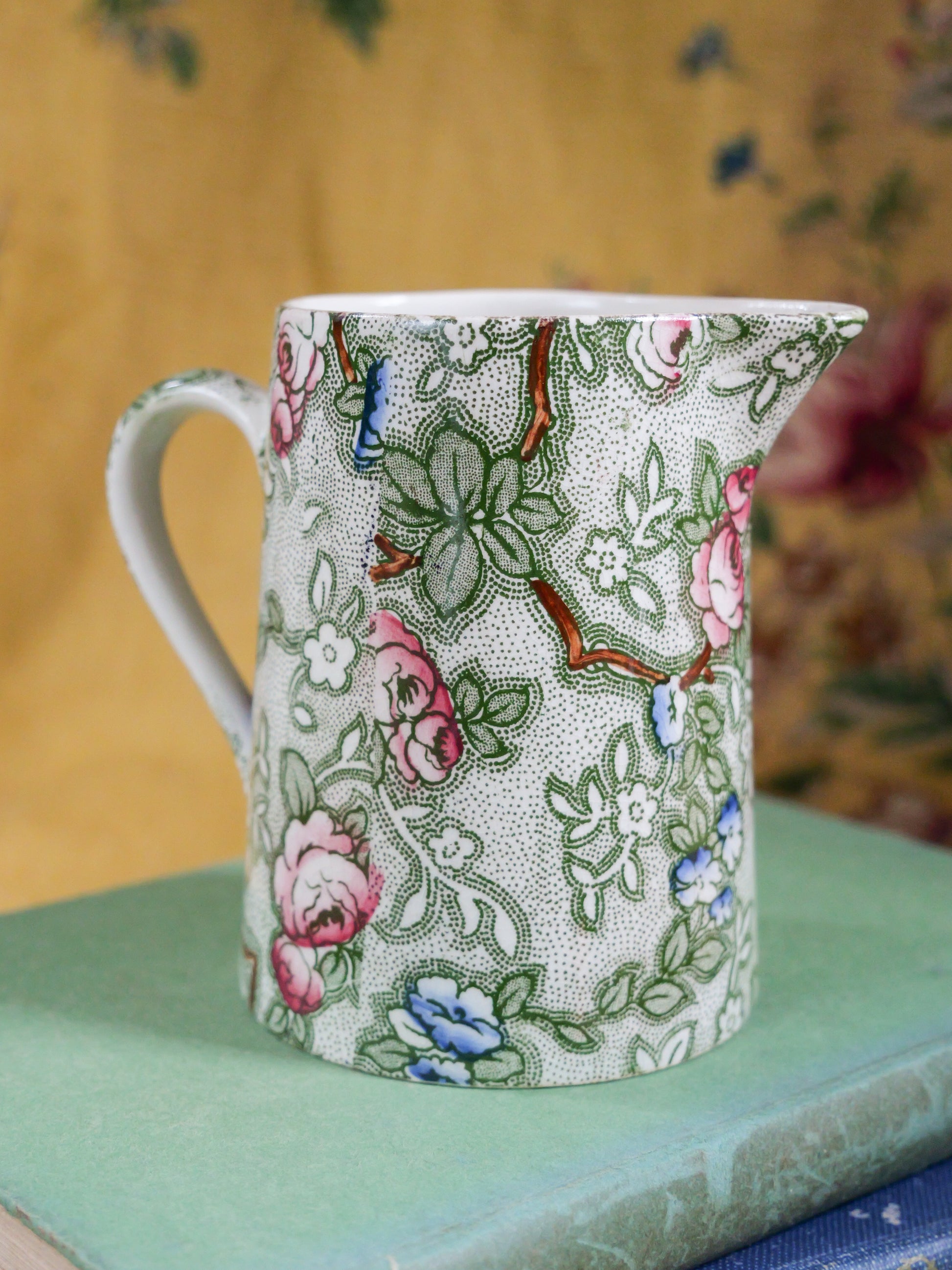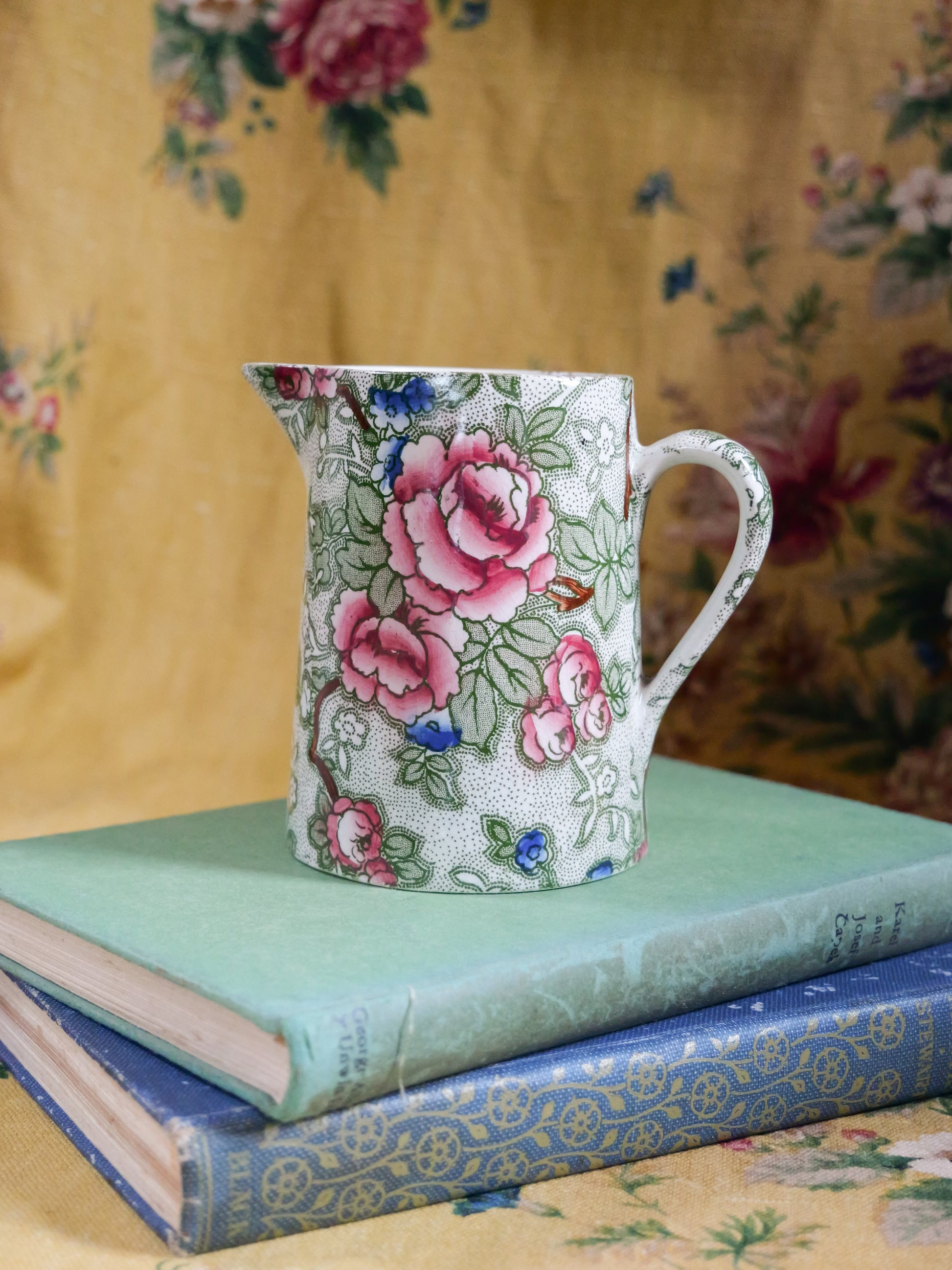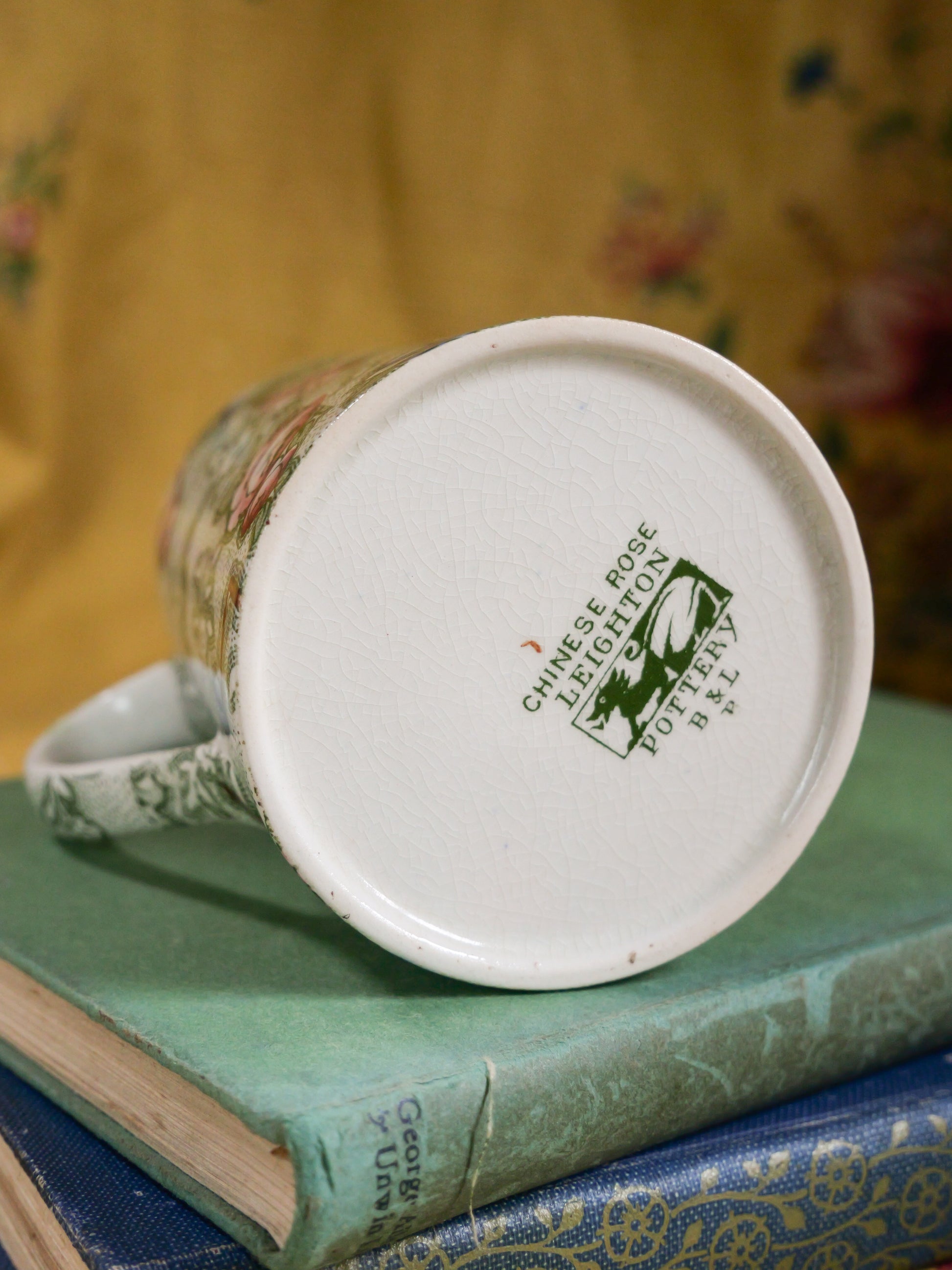 A very pretty small jug from the early 20th century by Leighton pottery with all over floral sheet transfer and hand colouring. Watertight and ready to use.
