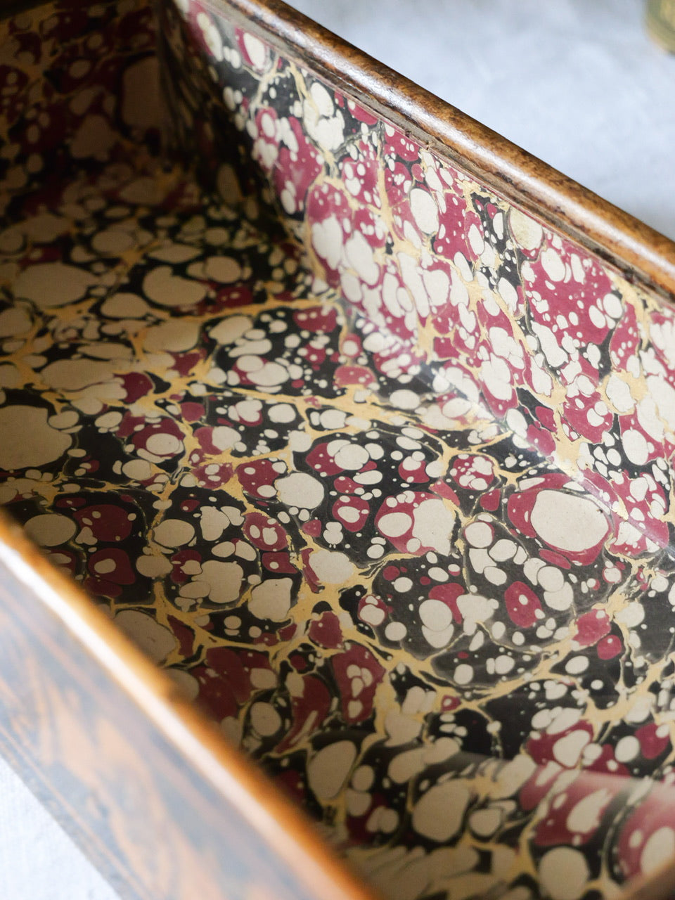 Beautiful marble paper lining and a lovely finish to the penwork.