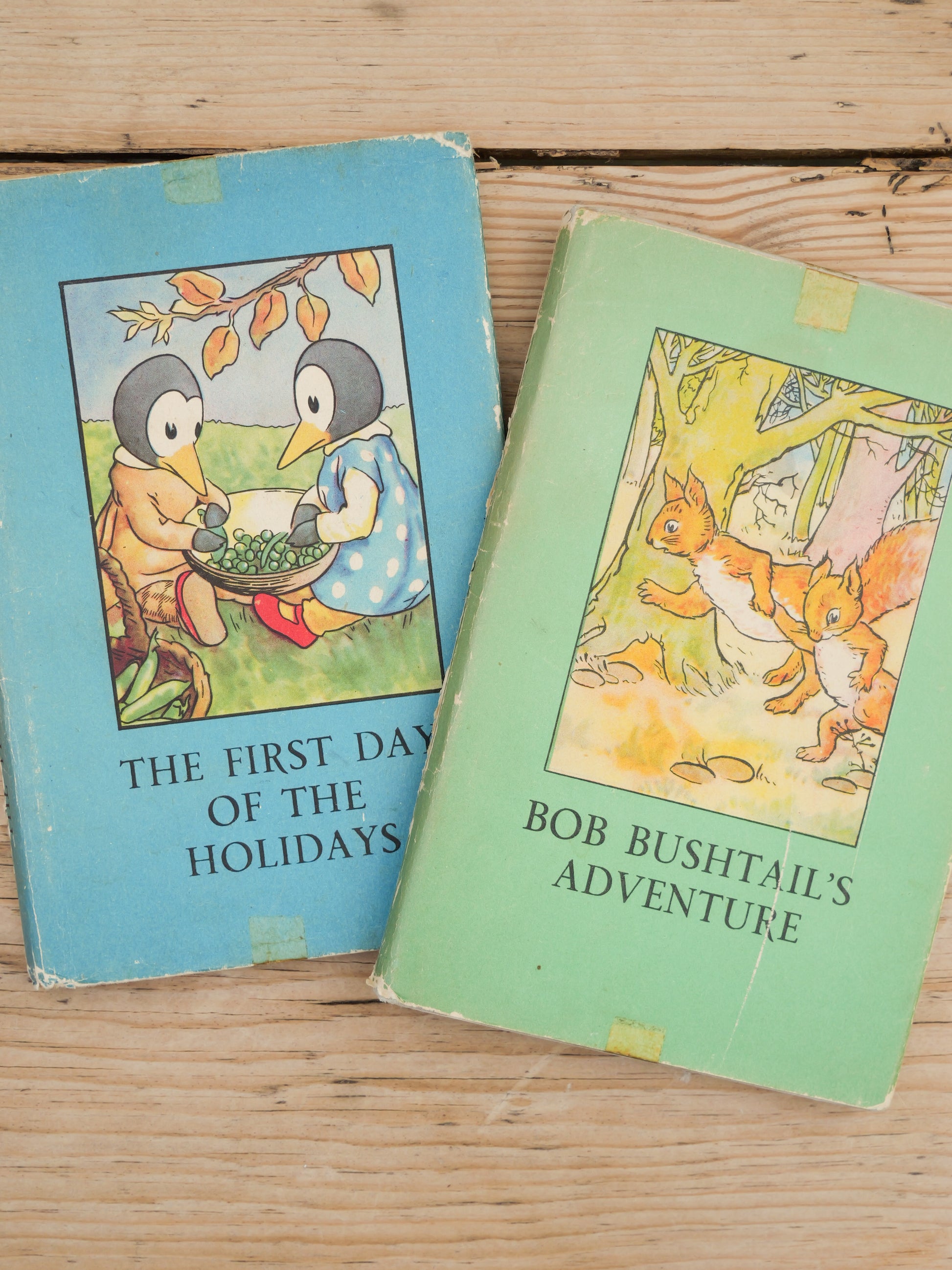 Hardcover. Dust jackets. Inscriptions to both first pages but otherwise clean throughout. Binding loose on Bob Bushtail’s Adventure but no pages missing.