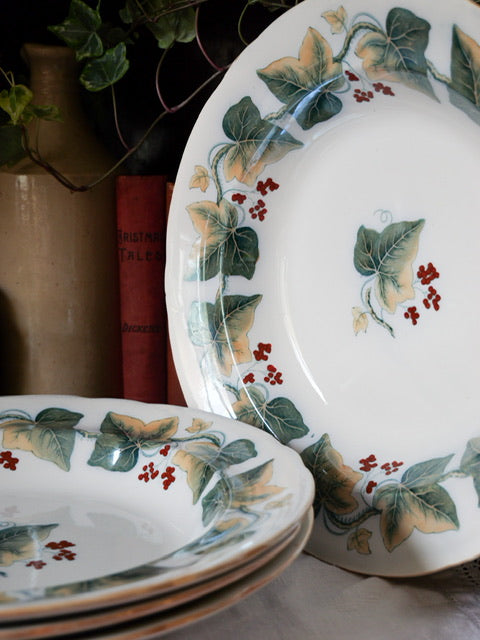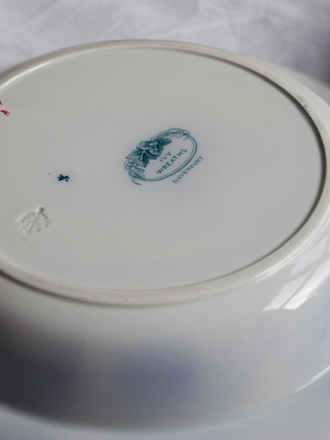 Set of 4 Antique Davenport Shallow Ivy Wreath Bowls
