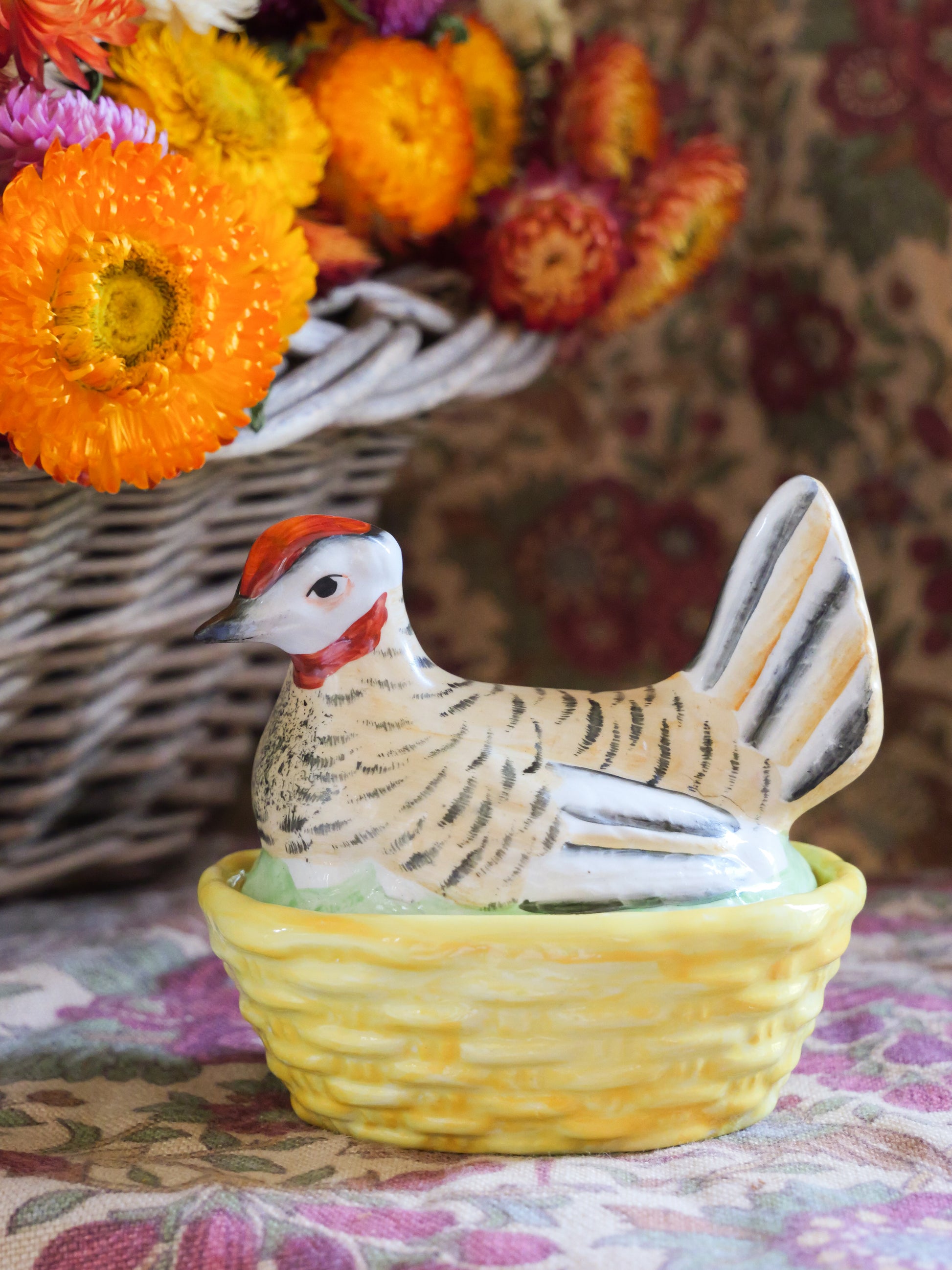 A gorgeous example of a tiny-sized hand painted Staffordshire hen tureen in vibrant colours from the early 19th century. A lovely kitchen companion which would make a super addition to a dresser.