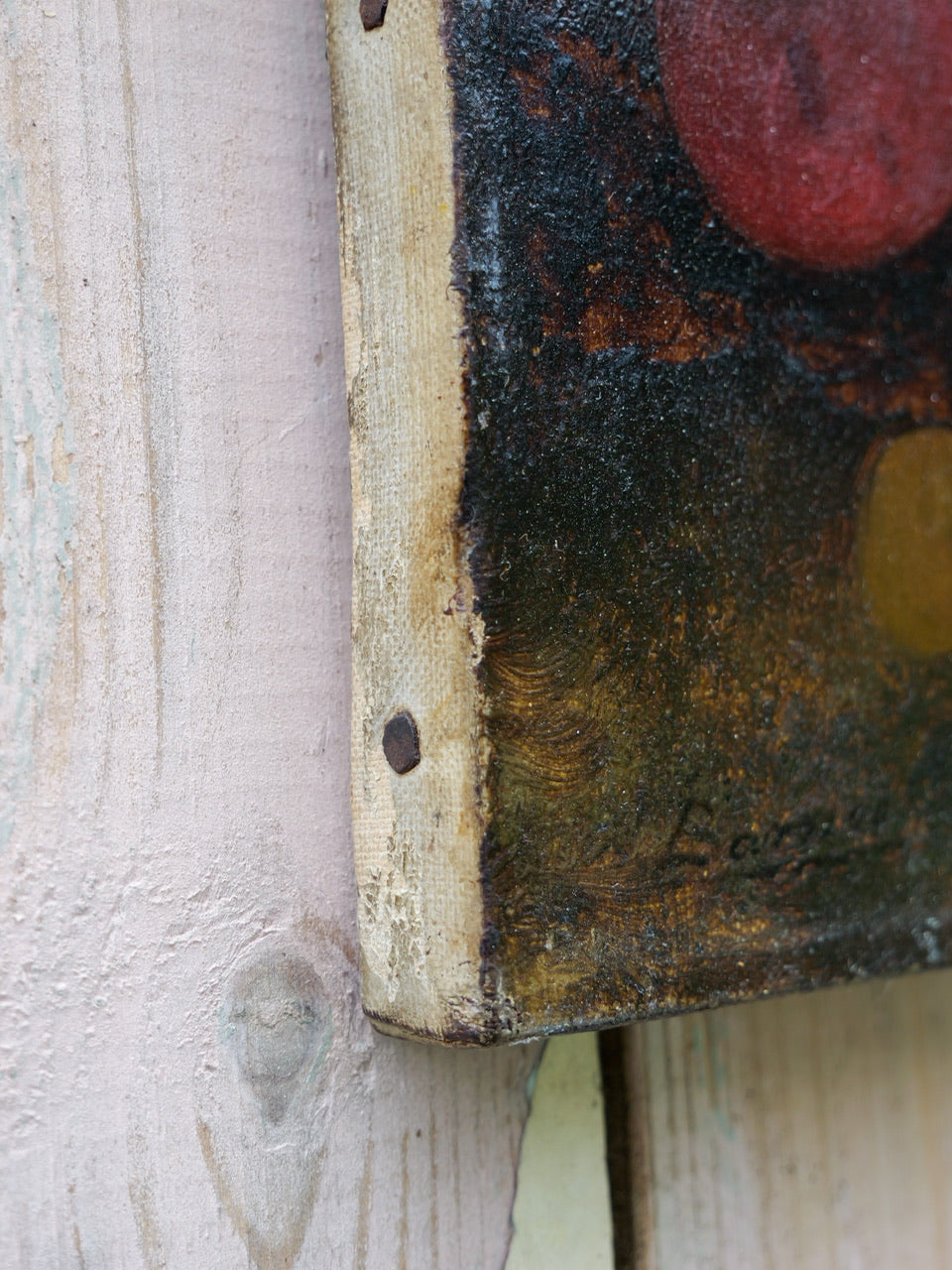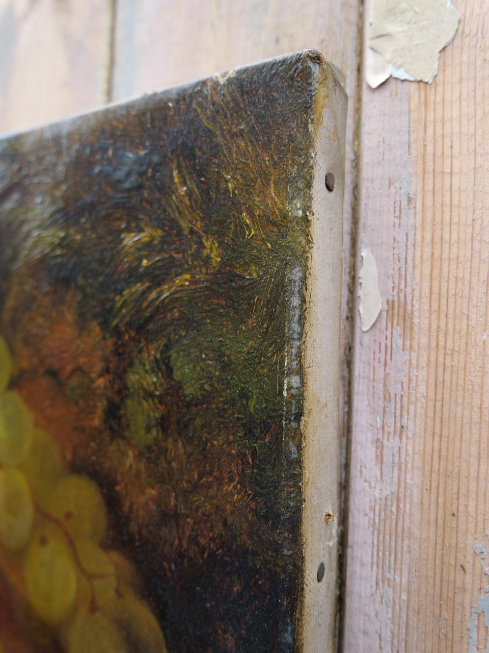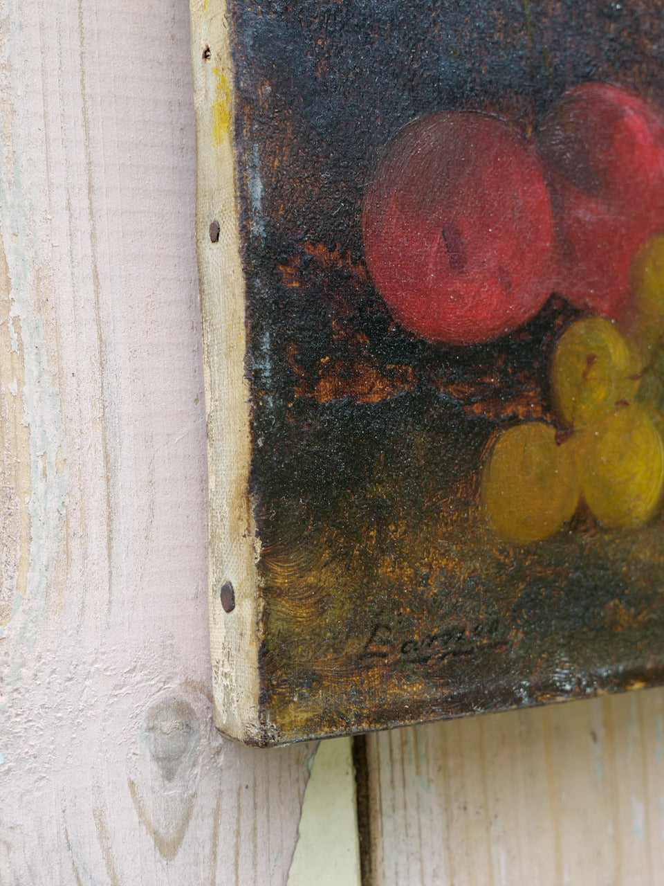 A most wonderful Victorian still life painting of a peaches, grapes and a strawberry on a natural background. Gorgeous rich colours. Signed. On original old stretcher.