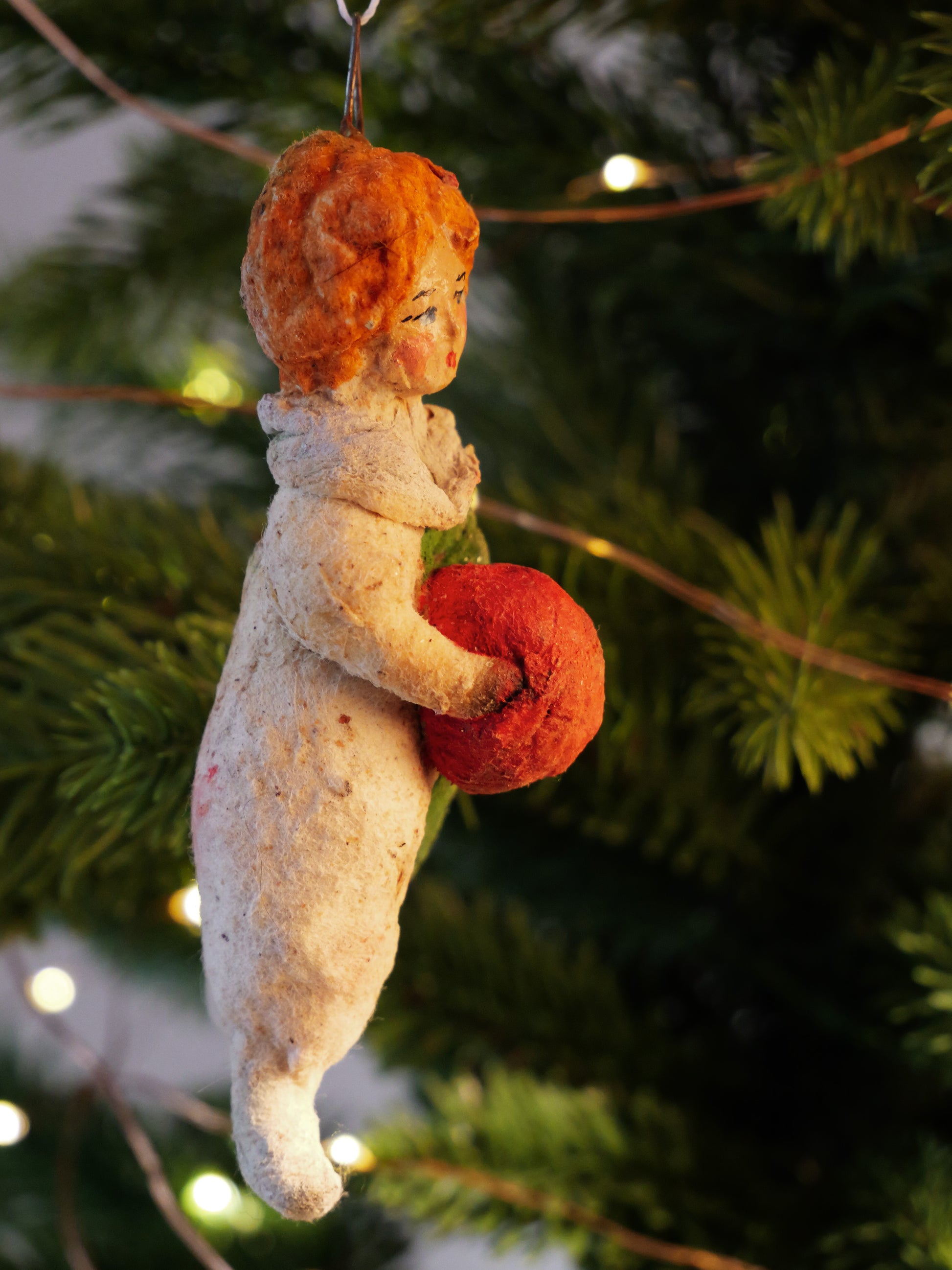 Vintage Handmade Spun Cotton Christmas Ornament - Helena